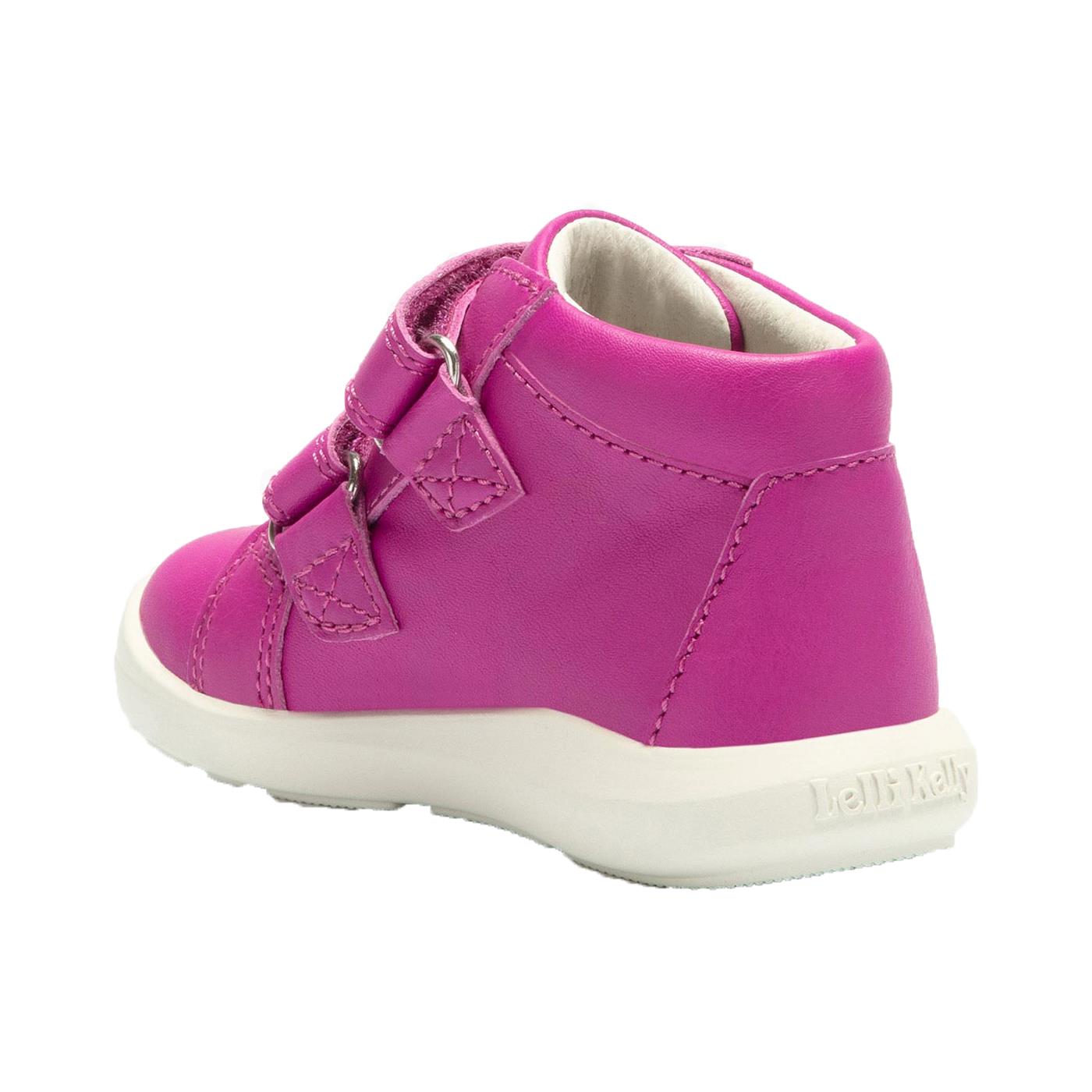 Lelli Kelly First Walking Estelle Ankle Boots are lightweight and come in a super soft leather. Bright Fuxia Pink uppers with a decorative 3D glitter heart on the outside of the boots. Double hook and loop adjustable fastening makes for easy on/off. Leather lined with soft padding for arch support. White sole unit with Lelli Kelly branding completes the look.
