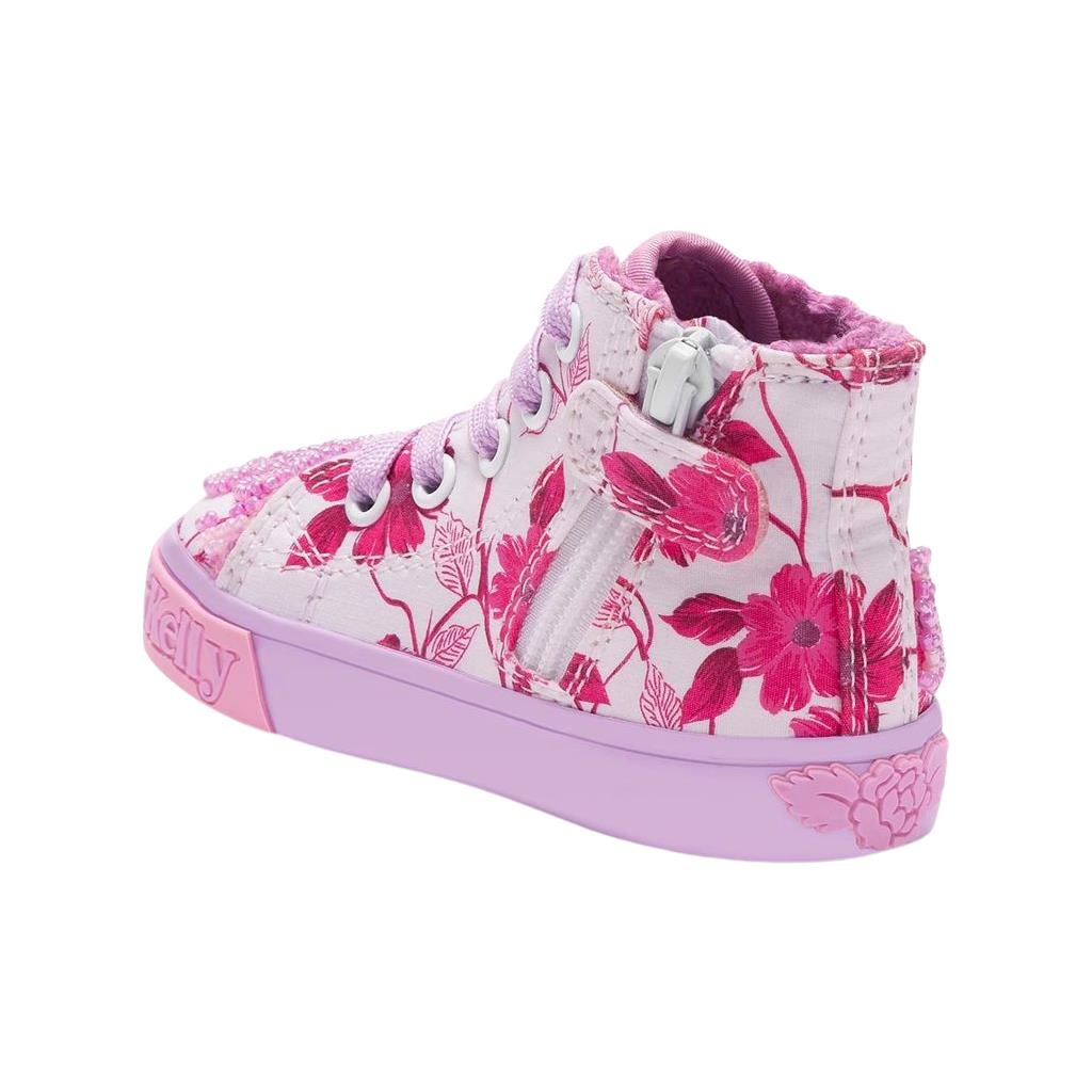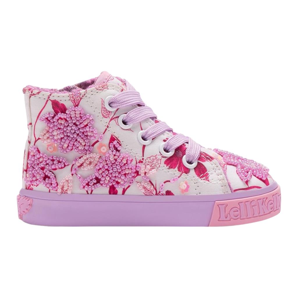 Fall in love with Lelli Kelly from an early age wearing the Brooke baby canvas boots. White canvas uppers are decorated with pink and lilac beaded flowers. Lace fastening or you can use the side zip for easy on/off. Pink shearling lining ensures those little feet stay lovely and warm. Lelli Kelly branding is embossed onto the sole unit and completes the look