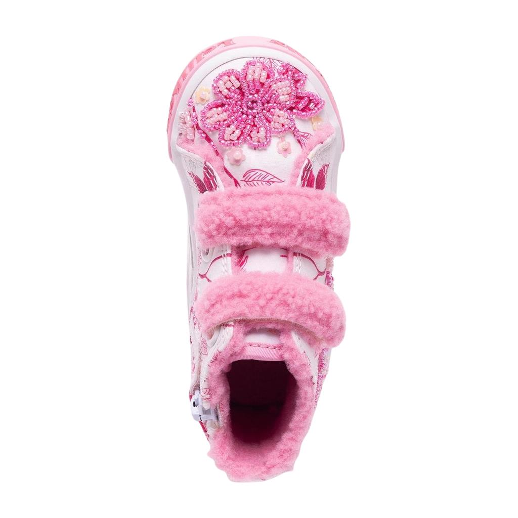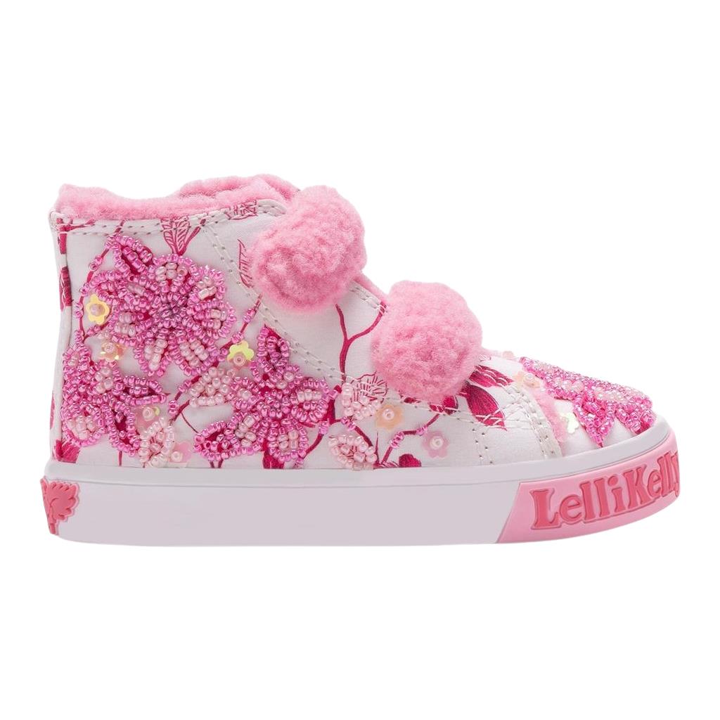 Fall in love with Lelli Kelly from an early age wearing the Brooke baby canvas boots. White canvas uppers are decorated with pink beaded flowers. Faux shearling adjustable hook and loop fastening. Alternatively you can use the side zip for easy on/off. The pink shearling continues inside the shoes to ensure those little feet stay lovely and warm. Lelli Kelly branding is embossed onto the sole unit and completes the look