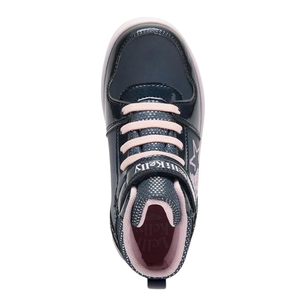 Grace ankle boots by Lelli Kelly will become your go to shoes no matter what the weather thanks to the water resistant technology. Grace comes in blue faux leather uppers and have a patent front trim and heel counter. Glitter sections run round the rear of the boots. Sparkly stars take pride of place on the outside of the shoes. Contrasting pink elastic laces and hook and loop fastening allow for quick and easy on/off. Pink textile lining and sole completes the look.