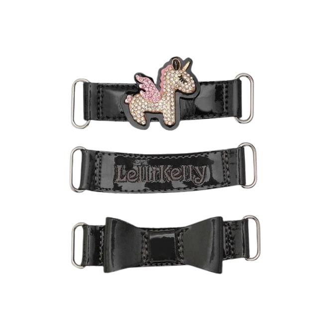 Bliss unicorn school shoes comes in a grey patent upper and has a hook and loop adjustable strap fastening. Bliss the unicorn is fixed onto the interchangeable strap fastening. If you prefer a different look, simply swap the interchangeable strap to either one with a large bow or a plain one embroidered with the Lelli Kelly branding. Natural leather lining completes the look. This is an F Fitting Shoe.