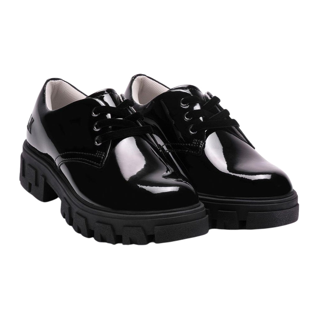 Lelli Kelly Maria Miss LK Shoe is a perfect if you are looking for a fuller school shoe. Maria comes in a black patent upper and has a lace up fastening. Shoes have a chunky durable sole unit. Padded leather lining provides that extra comfort you'd expect from a Lelli Kelly shoe. LK is embroidered in black onto the outside heel counter of the shoes